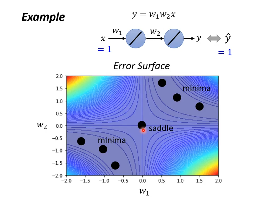 根据经验,当模型参数有很多时,遇到 local minima 的情况是非常罕见的。如果模型的loss很大并且不再下降,基本上都是卡在了 saddle point。