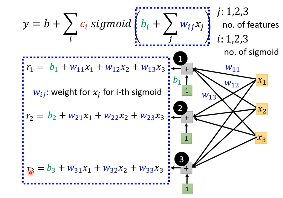 其中i表示第几个sigmoid函数,j表示第几个feature(即后一天的数据与前多个天的数据相关)。