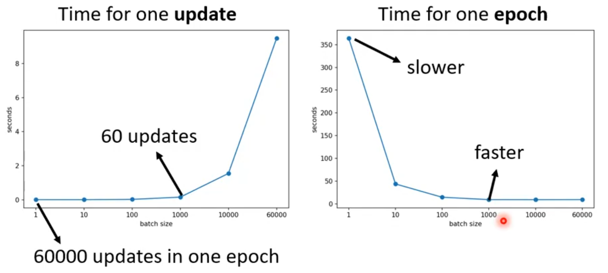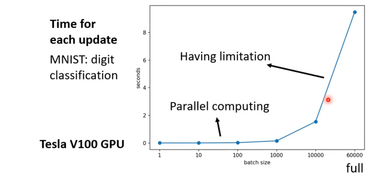 考虑GPU的并行计算,对于一次完整的epoch,small batch size 需要更长的时间,反而large batch size需要更少的时间。