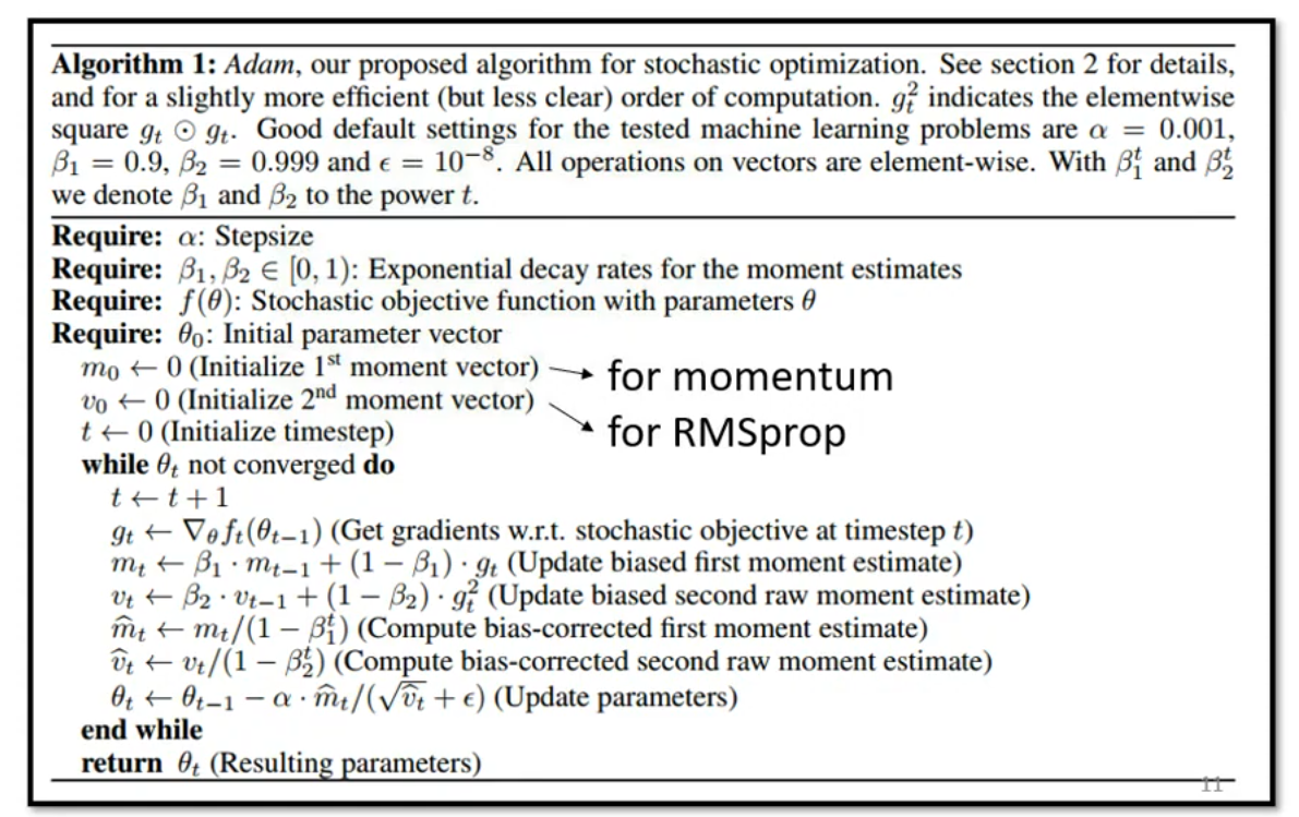 在实际的训练任务中,我们在 Optimization 的时候,用到的优化方法是 Adam。这个优化方法结合了 RMSProp 和 Momentum。参考论文为:ADAM: A METHOD FOR STOCHASTIC OPTIMIZATION。