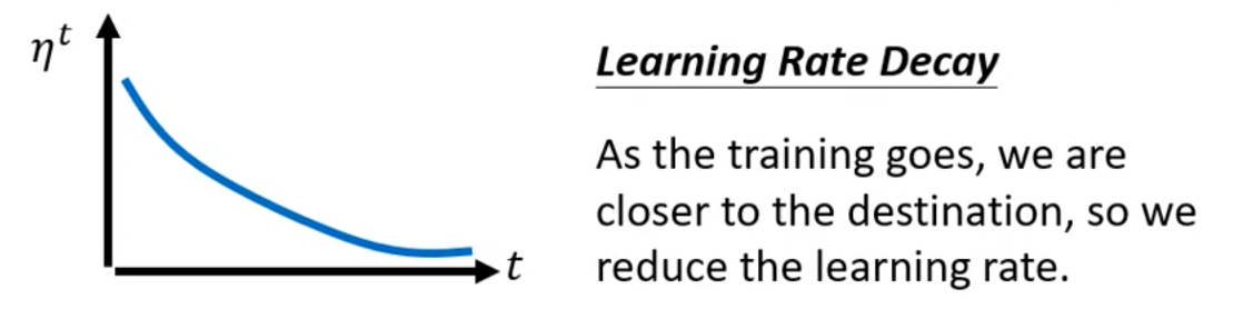 随着训练的推进,我们越来越靠近最终目标,所以我们应该逐渐降低学习率,所以\eta^t可以是一个随着t增减而减小的函数: