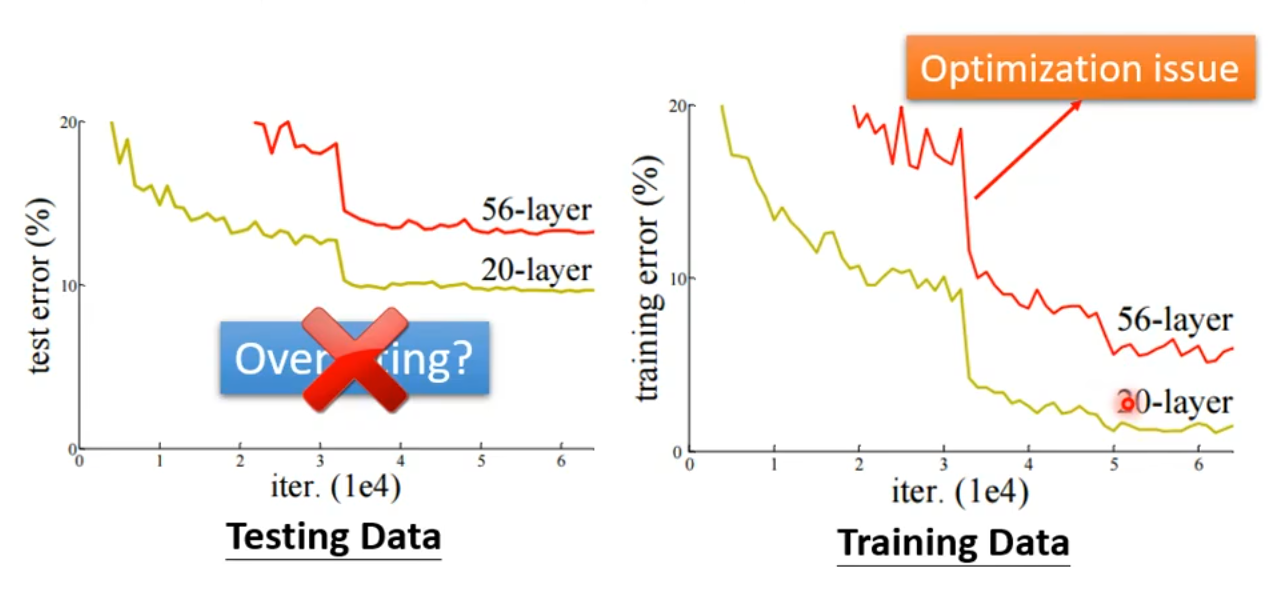 In real training tasks, we should observe results on Training Data first. Start from shallower model (or other simple models), which are easier to optimize, if deeper models obtain smaller loss on Training Data, then there is Optimization Issue.