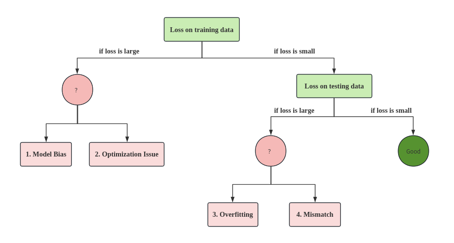 If the model loss is samll on training data, but large on testing data, it may be due to Mismatch.